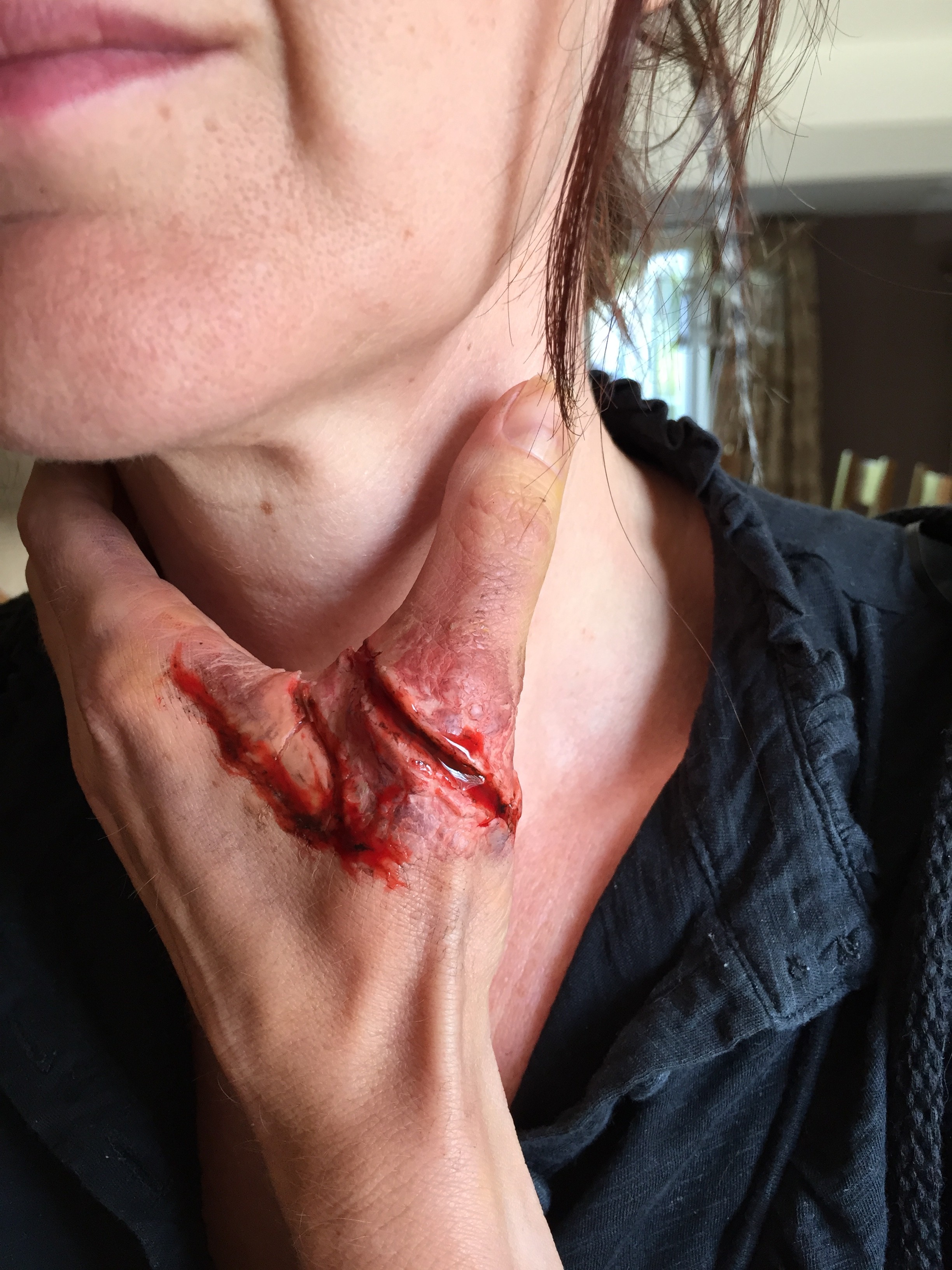 Most of our special effects are made using products without latex, so are very gentle and wash off with soap and water, but give a great effect on kids and adults alike. We can tone it down a bit for the kids – we don’t want anyone having nightmares!!